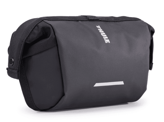 The Thule Chasm Handlebar Bag keeps small items easily accessible while riding. Featuring a hinged top opening, snap closure, and a removable inner pouch for valuables, this bag is designed for convenience. Its universal hook-and-loop straps ensure compatibility with most handlebars, and the water-resistant fabric keeps contents protected