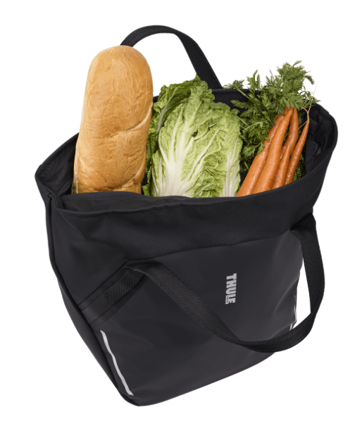 This tote bag is compatible with Thule InLock universal panel (required for use), making it easy to attach or remove in seconds. Simply slide the bag onto the mounting frame, click it into place, and enjoy a rattle-free ride. Releasing the bag is just as simple – pull the webbing tab, and it slides right off. Works with the rack already on your bike or perfectly integrates with any generation of the Thule Tour Rack
