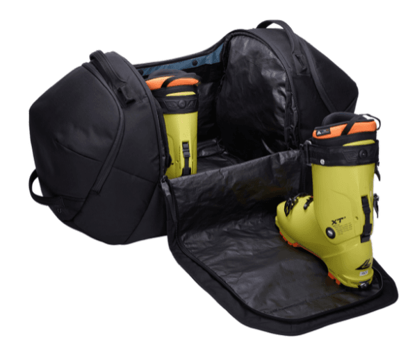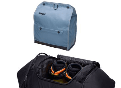 The duffel has a dedicated compartment for all the ski or snowboard essentials – helmet, goggles, gloves, and ski pass. The boot compartment even comes with a standing mat so that your feet do not get wet when you are changing out of the ski boots. The goggle compartment protects your lenses, while the removable dry bag keeps wet items separate from dry. Even with your ski or snowboard gear packed, the roomy end pocket has enough space for ski pants, a jacket, or apres-ski clothing. The luggage pass-through strap helps you attach the duffel to the Thule RoundTrip rolling ski bag, so that you can effortlessly travel in an airport.